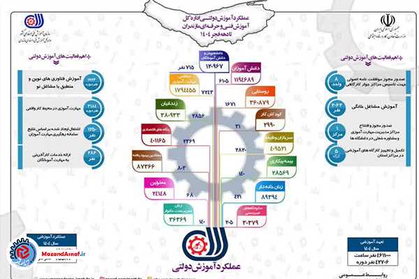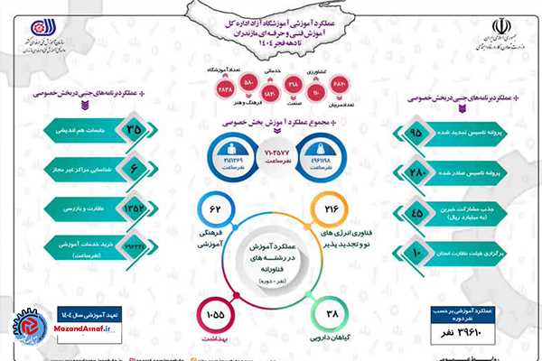 مدیرکل آموزش فنی و حرفه‌ای مازندران با اشاره به هم‌افزایی میان مراکز دولتی و آموزشگاه‌های آزاد گفت: در مجموع ۱۰ ماهه سال جاری، بیش از یک‌میلیون و ۳۶۰ هزار نفرساعت آموزش مهارتی در استان ارائه شده که نشان‌دهنده حرکت هدفمند به سمت توسعه عدالت‌محور مهارت‌آموزی است.